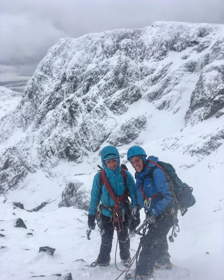 For our last day, the girls were going to lead the whole way up Ledge Route on Carn Dearg. We wanted to be quick to avoid the high winds forecast for later in the day. With a mixture of pitching, moving together and short roping, the girls led the majority of the route in fine style. With the winds strengthening and lots of fresh snow being blown around, we arrived on the plateau and followed the tourist route down to a well earnt rest and a beer! A great 4 days were had, lots of new skills for the girls and great practise for me! Thanks Sara and Charlie!